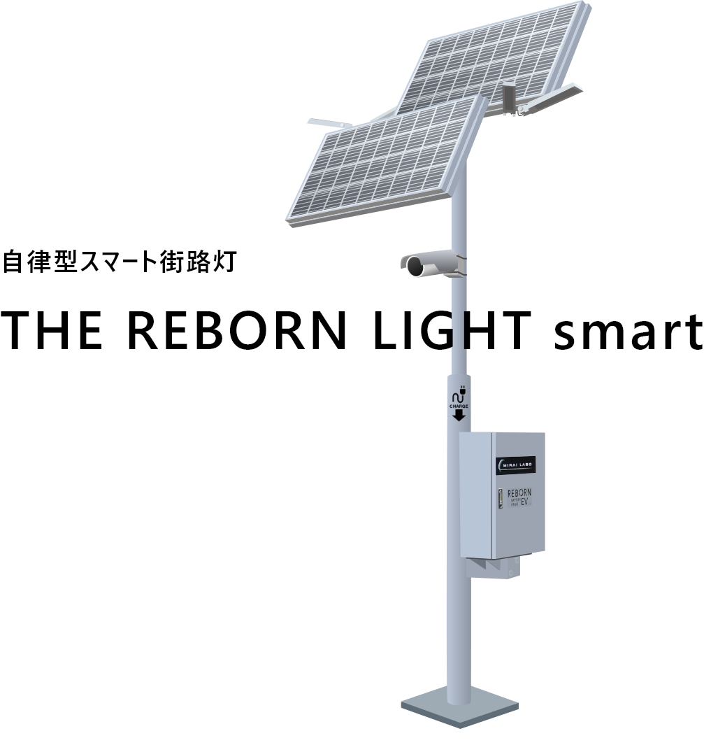 THE REBORN LIGHT smartとは、EV(電気自動車)で一度役目を終えたバッテリーをリパーパス(再製品化)した自律型スマート街路灯です。